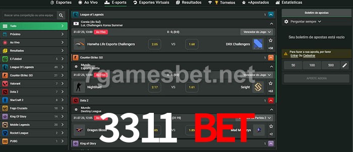 O 3311 Bet oferece uma grande seleção de opções de apostas em e-sports com probabilidades competitivas